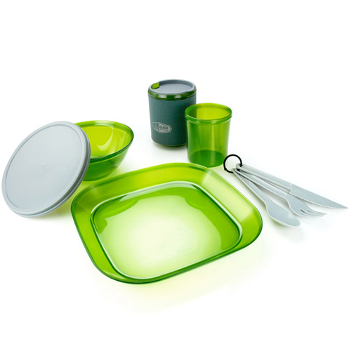 식기로도 활용할 수 있는 보관용기와 실용적인 커틀러리 세트로 구성된 1인용 테이블 세트.